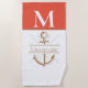 Coastal Coral Peach Anchor Nautical Monogram Beach Towel