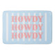 Howdy Bath mat is a light blue striped bath mat with a cute and funny saying meme. The word "howdy howdy howdy" is written in pink a fun graphic western style typography. It is a perfect bathroom accessory for western country lovers, coastal granddaughter esthetic, coastal cowgirls who the love beach and horse riders. So get your coastal cowgirl decor for your dorm room.