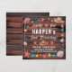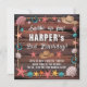 Featuring weathered wooden planks, a textured rope border, pastel seashells, starfish, and turquoise horseshoes, this design captures the perfect mix of cowgirl spirit and coastal sweetness. The playful hand-lettered headline pairs beautifully with bold birthday typography, creating a strong focal point while keeping all party details clear and readable.