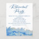 Invite your guests to a retirement celebration with this customisable flyer. This elegant and graceful design is hand painted watercolor in shades of light blue, classic blue and navy blue complemented by hints of gold (simulated foil) . The abstract, clean design is perfect for a man or woman who is ready to celebrate the next chapter in life. Text is in classic blue and can be customised for your celebration.
