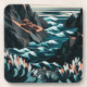 Coastal Energy: This vibrant flat vector illustration captures the dynamic beauty of a rocky beach from an overhead perspective. Dark blue and orange tones bring life to the scene as waves crash onto the shore, creating a captivating contrast. Geometric shapes add depth, while detailed textures on rocks and plants bring a natural feel to this stylized artwork. The minimalistic design emphasizes movement and energy, making it a perfect piece for those looking to add a bold and modern coastal vibe to their collection.