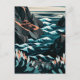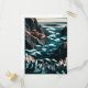 Coastal Energy: This vibrant flat vector illustration captures the dynamic beauty of a rocky beach from an overhead perspective. Dark blue and orange tones bring life to the scene as waves crash onto the shore, creating a captivating contrast. Geometric shapes add depth, while detailed textures on rocks and plants bring a natural feel to this stylized artwork. The minimalistic design emphasizes movement and energy, making it a perfect piece for those looking to add a bold and modern coastal vibe to their collection.