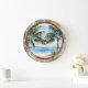 Transport yourself to a serene beachfront oasis with this stunning "Nautical Window" wall clock. Designed to evoke a sense of island vacation, its artistic landscape showcases swaying palm trees, gentle ocean waves, and a calming blue sky. This decorative timepiece is perfect for bringing a relaxing coastal vibe to any interior, transforming your home into a sunlit resort. With its vibrant colours and peaceful aesthetic, this round clock is more than just a time-teller; it's a handcrafted piece of modern art that offers timeless elegance and a chic accent to your decor, reflecting a true love for nature and seaside beauty.