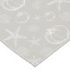 Coastal Fall table runner featuring pumpkin, coral and starfish seashells in white on a sand greige (between grey and beige) background. Perfect for beach themed autumn entertaining and Thanksgiving celebrations.