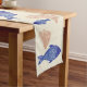 Add coastal charm to your dining table with this fish and coral table runner. Indigo fish and soft coral motifs on an ecru background create a modern, seaside-inspired look for everyday or special gatherings.