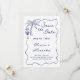 Announce the good news of your upcoming nuptials with this charming and casual coastal themed wedding save the date that features hand drawn doodles and a custom couple's crest on the reverse side. Illustrations include a tropical palm tree, cocktail and starfish sea shell inside a whimsical squiggle wave border. The nautical navy blue artwork on an off-white background are perfect for informal seaside ceremonies.