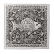 This coastal ceramic tile features a beautifully detailed fish framed by an intricate border of swirling waves, coral branches, bubbles, and stylized marine flourishes. Rendered in charcoal black with crisp ivory white, the design has a classic two-tone block-print look that highlights its detailed linework and coastal charm. The rich pattern and handcrafted feel make it a versatile choice for beach homes, nautical décor themes, accent walls, backsplashes, craft projects, and coordinated coastal collections. Search ID1208 to see additional colors and design motifs in this series. Note: design may contain generative content