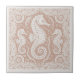 This coastal ceramic tile features a trio of detailed seahorses surrounded by an intricate arrangement of swirling waves, coral branches, bubbles, seaweed, and stylized marine details. The design is printed in soft coral pink paired with crisp ivory white, giving it a striking two-tone look inspired by classic block-print and nautical artwork. With its rich pattern and handcrafted feel, this tile works beautifully in beach homes, nautical décor themes, accent walls, backsplashes, and decorative coastal projects. Simply choose your preferred color variation to suit your style. Search ID1208 to see additional colors and design motifs in this series. Note: design may contain generative content