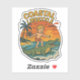 This kitschy "Coastal Lifestyle" throwback beach art is pure Florida kid chaos! This surfer boy already knows how to handle an alligator and catch a wave, no surfboard needed. He's a Florida native for sure! The surf beach at sunset scene has bold orange, red and yellow colors, complete with palm trees blowing in the tropical breeze. This cheeky vintage inspired surfing graphic will make you chuckle. This funny sticker is perfect for your water bottle, cooler, vehicle, laptop and more! • Sticker available in glossy white, matte white, and transparent. Transparent stickers show best on light surfaces. For darker items, a white sticker base is recommended for better visibility and contrast.