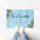 Coastal Light Blue Rustic Wood Name Welcome Doormat