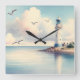 Coastal Lighthouse Seagulls Pastel Sky Serenity Square Wall Clock