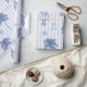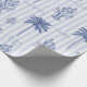 Playful pattern in blue white tones featuring palm tree, lobster on striped background as coastal / beach party / event gift wrap for bachelorette, bridal shower, birthday party, graduation party etc.