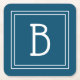 Coastal Monogrammed Ocean Blue & White Initial Square Paper Coaster