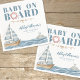 At the top, "Baby On Board" is displayed in a mix of delicate handwritten script and classic serif fonts, all in shades of blue for a bold and timeless look. The rest of the text complements the design in the same elegant style.