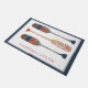 This cute door mat features vintage nautical oars in soft watercolor shades of red, tan and blue. Personalise with your choice of name or special text. Makes a great gift for your new house.
