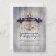 Coastal or seaside baby shower invitations feature gold foil anchor, navy blue monogram, string of lights and driftwood background