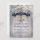 Coastal or seaside baby shower invitations feature gold foil anchor, navy blue monogram, string of lights and driftwood background