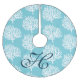 Coastal style Christmas tree skirt with a sea coral pattern in white and your family initial letter in dark blue script. Go coastal elegant this holiday season with this great nautical sea coral Christmas tree skirt.