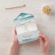 Set the tone for elegant seaside wedding with this all in one beach wedding invitation featuring beautiful watercolor ocean.