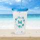 Coastal Ocean Blue Seashells and Starfish Monogram Acrylic Tumbler