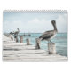 This beautiful shot features a brown pelican and its natural surroundings including a blue ocean and distressed wood path. A stunning yet calming beach or nautical vibe.