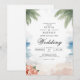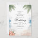 Capture the essence of a seaside union with this serene design. Gentle watercolor washes evoke tranquil waters and soft sands, framed by lush palm fronds. A tranquil and romantic atmosphere for your special day.