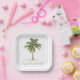 These cute paper party plates feature a tropical palm tree with a matching green border. Personalize with your choice of name and special text.