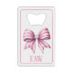 This fun monogrammed bottle opener features beautiful coastal inspired pink and white striped bows on each side. Personalise the monogram with your choice of initials. Fun for personalised gift bags and party favours.