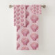 This cute bath towel set features coastal pink scallop seashells on a background of soft pink.