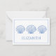 This coastal inspired tiny note card features classic coastal scallop seashells in blue and white and can be personalised with your choice of name or special text in matching blue.