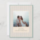 Soft sage stripes frame your photo in a clean, modern layout that feels fresh and timeless. The subtle coastal-inspired palette adds a relaxed elegance that works beautifully for beach, outdoor, or destination weddings. Simple serif text keeps the design refined while letting your image shine. A classic choice for couples who want something understated and stylish.