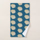 This bath towel set features a pattern of yellow clam shells on a dark blue background. Great for your beach house or bringing some fresh sea air into your home.