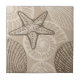 Coastal sealife starfish and shells in beige ceramic tile