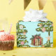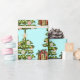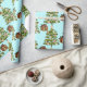 Watercolor seashells, sand dollars and starfish crowned Christmas trees with wrapped present under the tree.