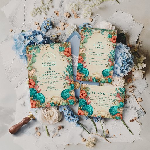 Coastal Seashell Wedding Invitation