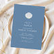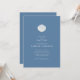 Elegant baptism invitation design featuring a hand-painted blue and white shell on a deep blue background that creates a timeless, coastal feel—perfect for classic, minimalist, seaside-inspired baptisms. The shell represents an old baptism symbol that was used to pour the water.