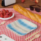 Square Paper Plate Set printed with Coastal Shoreline Salty Wavy Repeat Pattern graphic artwork design by TheFabricSeal at Zazzle #ZazzleMade https://www.zazzle.com/store/thefabricseal
