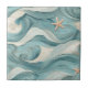 Coastal Starfish on Aqua Sand Waves Pattern (11) Ceramic Tile