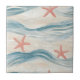 A soothing coastal pattern ceramic tile featuring soft aqua waves, sandy textures, and coral starfish scattered across a breezy beach palette. This calming ocean-inspired design is ideal for beach lovers, coastal décor fans, and anyone who enjoys serene summer aesthetics. A thoughtful gift for seaside birthdays, coastal weddings, ocean retreats, and warm-weather celebrations.