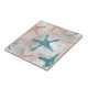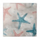 Coastal Starfish on Aqua Sand Waves Pattern (4) Ceramic Tile