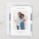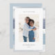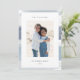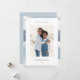 Chic coastal style holiday card adds nautical flair to your Christmas greetings. Perfect for sharing a vacation photo, or for families who live in coastal, tropical, warm weather or island locales, this elegant design features your favourite vertical photo with a border of blue-grey watercolor stripes. Add your custom holiday message (shown with "seas and greetings") and your names or family name.