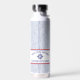 Welcome your friends and family aboard your boat or cottage home with this water bottle. This nautical striped monogram boat name design features classic blue pinstripes and a compass rose emblem. Personalize with your boat's name and available in a collection of nautically themed items. Perfect for grilling on your boat or back yard, boat lovers, coastal homes, or seaside entertaining. Stylish and personalized, this nautical design adds a crisp maritime touch to everyday use.
