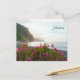 This scenic postcard captures the breathtaking coastline of Madeira island, as the soft glow of sunset hits the dramatic cliffs. Vibrant pink wildflowers in the foreground frame a tranquil view of the Atlantic Ocean and the rugged northern shore. It is an ideal keepsake for lovers of botanical beauty, coastal landscapes, and the unique charm of the Madeira island.