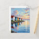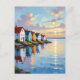 Keep in touch with your friends of family with this beautiful postcard with an ai illustration of a row of cottage on the coast of a bay or inlet of the ocean at sunset.