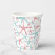 A cute and trendy watercolor beach pattern, boasting a blend of captivating pink and teal shades reminiscent of a beach house paradise. Embrace the essence of summer with this coastal-inspired design, adorned with whimsical sea stars that exude a nautical charm. Elevate the ambiance further by exploring a myriad of background colours, allowing you to tailor the look to your coastal aesthetic. Teal Blue And Pink Coastal Tropical Starfish Summer Beach Gender Reveal PartyPaper Cups