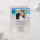 Newlyweds marriage announcement card with photo template and beach theme. Whether the ceremony was small and private or the couple eloped, this wedding announcement works for a couple who was married on the beach or in the tropics. Big sea stars over beach sand and tropical blue water is the design with a place to share a wedding photo at the top. Use the paragraph template to announce the marriage location and date, and to invite guests to celebrate at a reception with the new newlywed couple.