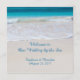 Coastal vows, welcome to our wedding by the sea. Customise the text printed on the front of this casual beach wedding program. Pretty, tropical ocean water and smooth beach sand is the background image on both sides of this paper with blue, script text.