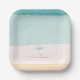 These coastal-inspired paper plates bring a soft, relaxed feel to summer gatherings. Featuring a watercolor wash of ocean blues and sandy tones, the design captures a calm beach scene with a delicate striped umbrella and small dog resting along the shore.