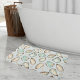 This coastal cool bath mat for your beach house, patio, or salty abode features a pattern of soft cream and aqua watercolor oyster and pearl illustrations.