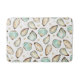 This coastal cool bath mat for your beach house, patio, or salty abode features a pattern of soft cream and aqua watercolor oyster and pearl illustrations.
